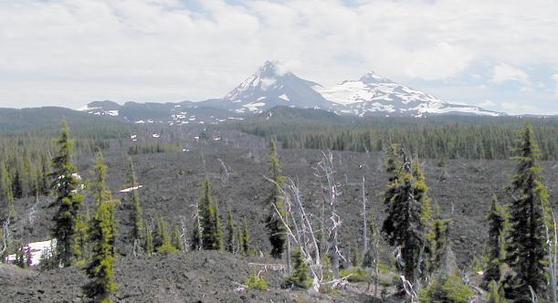 Lava fields cover the approach to the North and Middle Sisters.