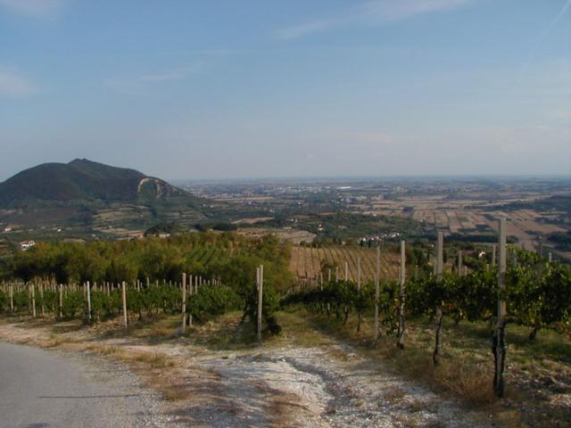 Looking down across vineyards towards the plains.