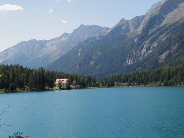 Huge mountains rise in all directions above the Lago di Anterselva.