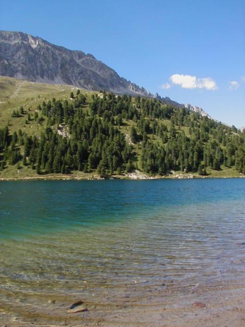 The green ridge above the Obersee plunges to meet the frigid waters.