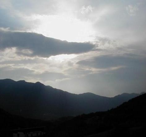 The sun is obscured by clouds, looking out from the Pian di Fugazze