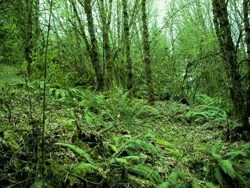 Typical wet, green Western Oregon second-growth forest vegetation.
