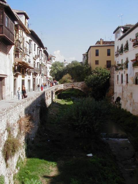 This stream flows down towards Granada. To the right, and up, is the Alhambra. To the left, and up the other side, is the old arab quarter.
