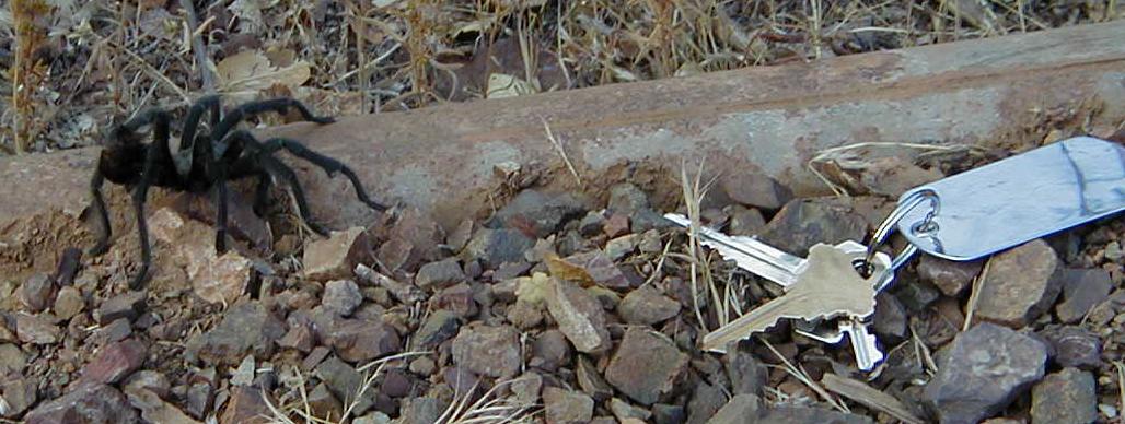 A hairy tarantula! Quite a surprise to see it sitting by the side of the trail - we certainly don't have these in Oregon! In reality, they aren't very poisonous (like a bee or wasp), nor aggressive, and are very fragile. They don't pose a threat to humans. |