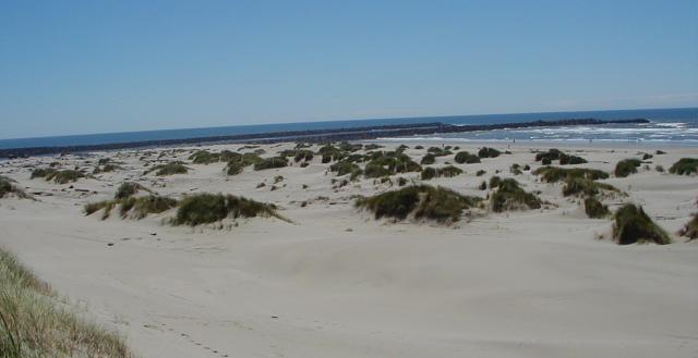 The size and extend of the dunes becomes apparent when compared with the people that appear as specks on the beach.