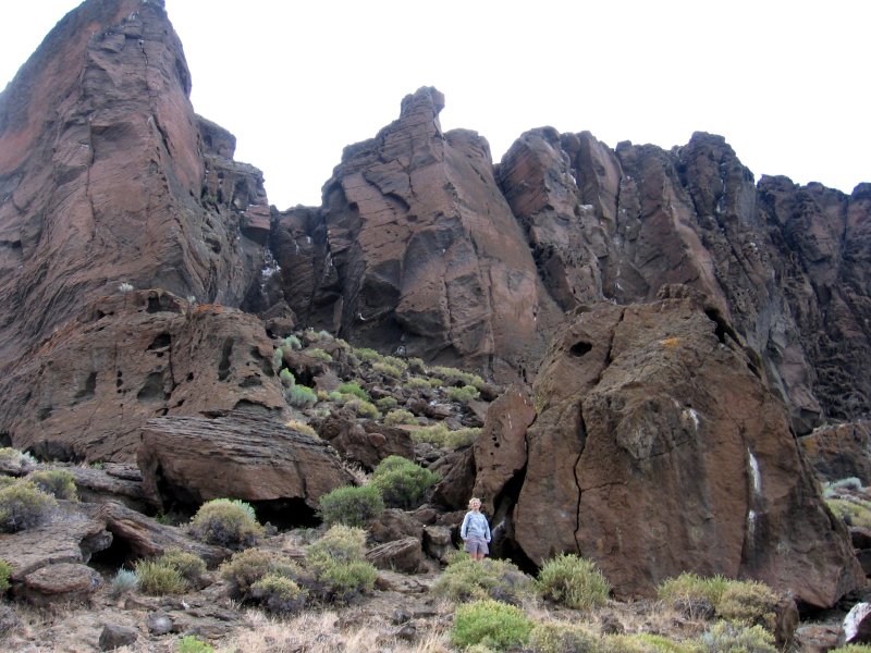 Ilenia stands in front of the towering walls of Fort Rock.