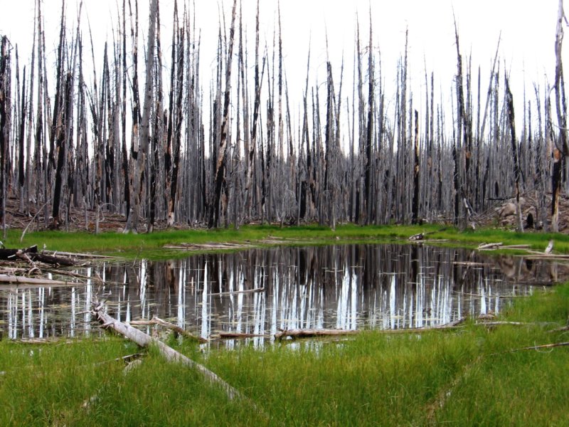 The area north of Waldo Lake is dotted with countless small ponds scattered across the relatively flat terrain.