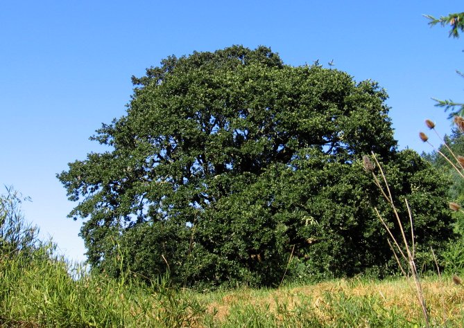 A beautiful old oak tree, on a small plateau visible from Dillard Road.