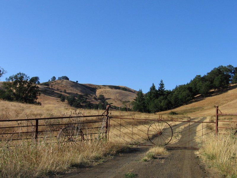 A ranch near the Umpqua River. I love the beautiful, rolling hills with stands of oak trees in this area.