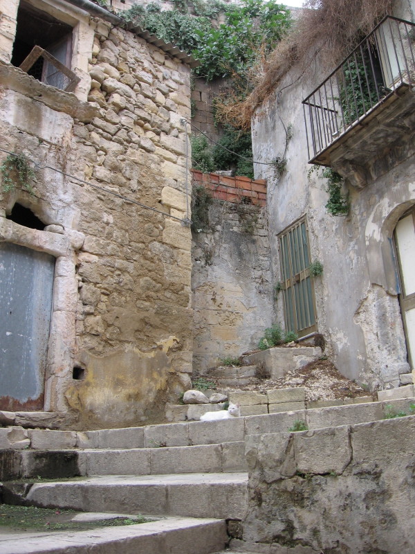 The cat must be used to watch tourists trekking down from the high part of Ragusa to Ragusa Ibla.